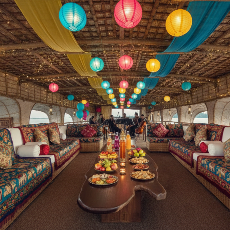 Want balloons, floral arrangements, or a themed setup? The cruise staff is at your service, making sure your celebration looks exactly as you envisioned. And the music? Whether you love upbeat grooves or soulful melodies, every note sets the perfect mood for your special day on the backwaters.