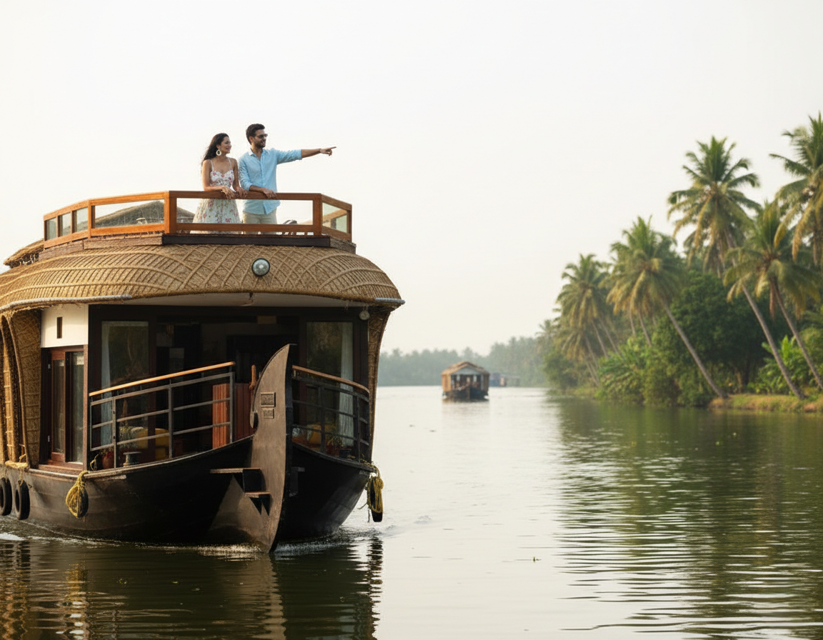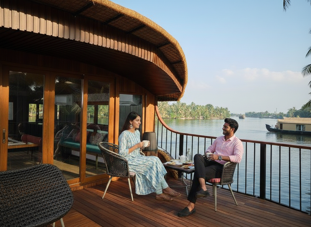 Begin your honeymoon with a peaceful cruise through the serene backwaters of Alleppey. From the moment you step aboard, every detail is thoughtfully arranged to create a magical and intimate experience for couples seeking privacy, comfort, and romance.