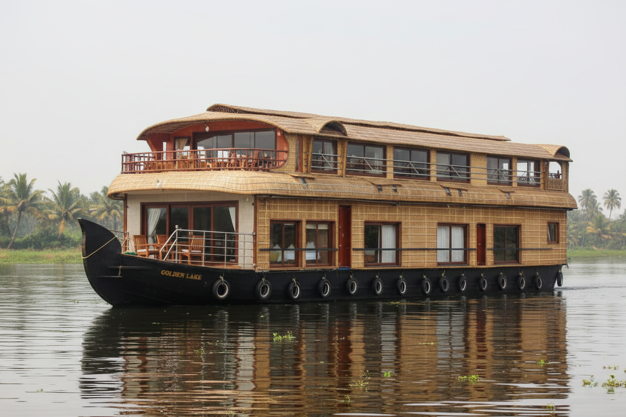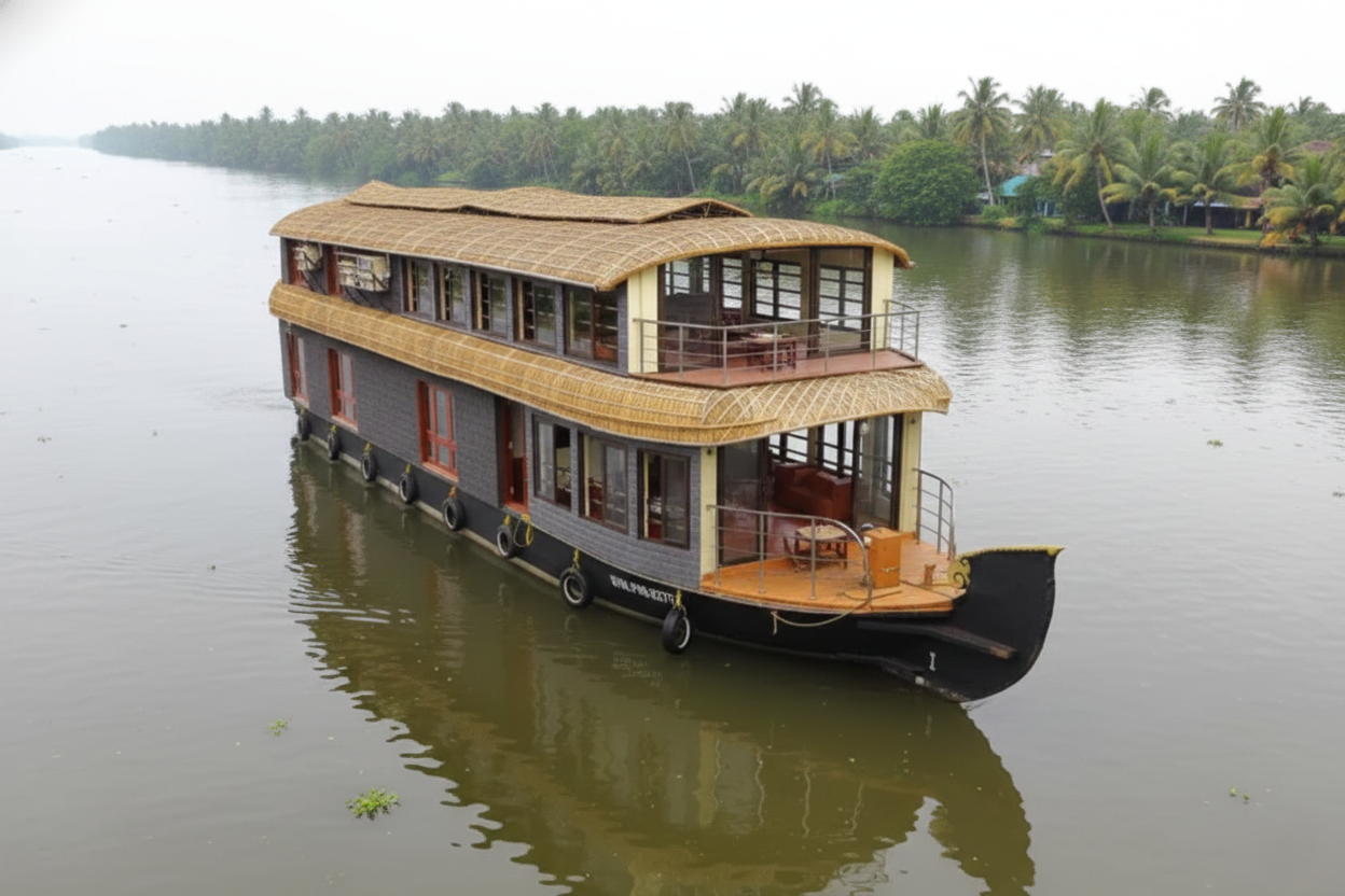 Indulge in refined luxury aboard our Super Luxury Houseboat in Alleppey, where breathtaking backwater views and exceptional service create a truly memorable journey.
